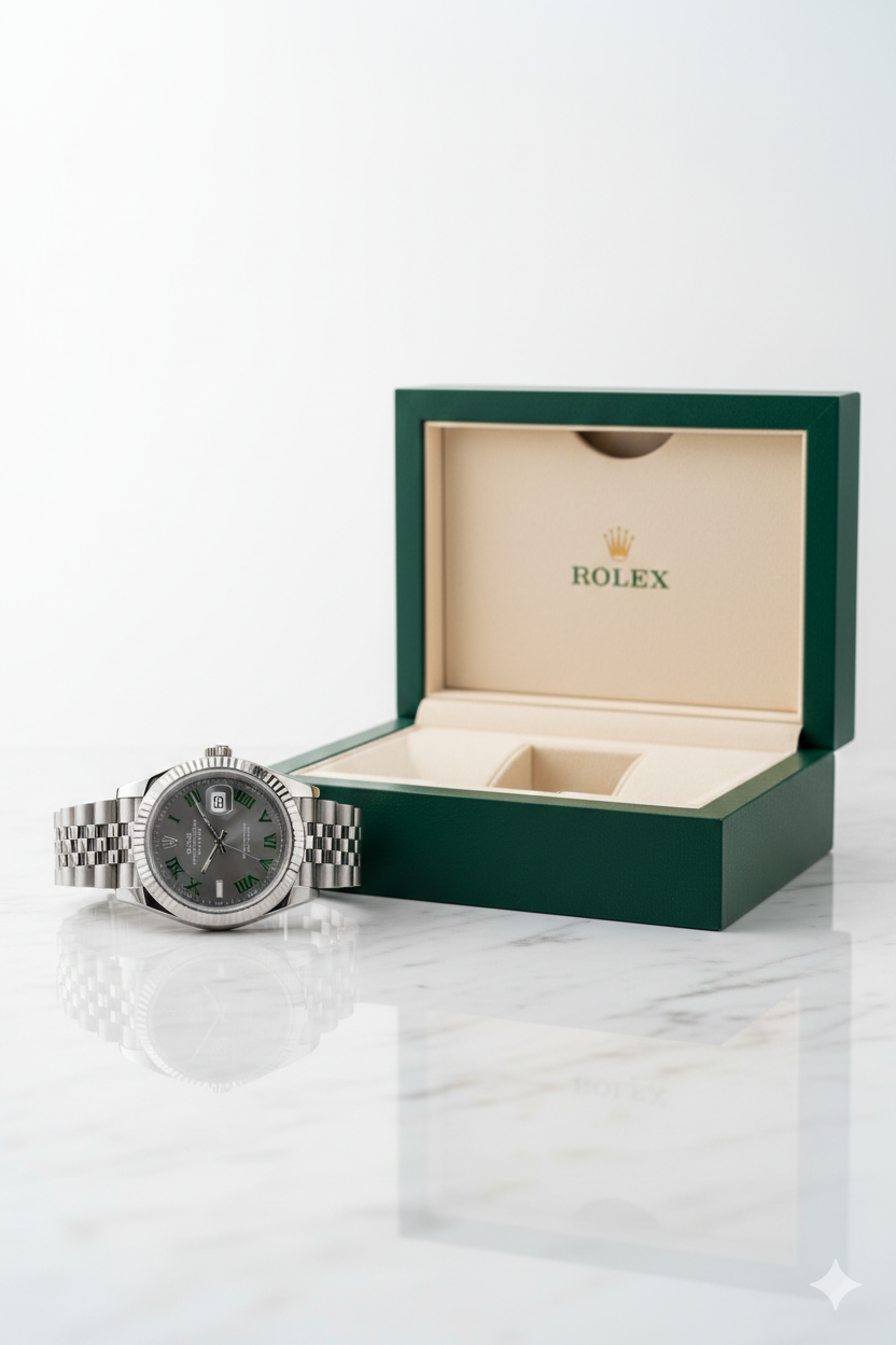 Rolex Datejust – Oystersteel with Grey Dial & Green Roman Numerals