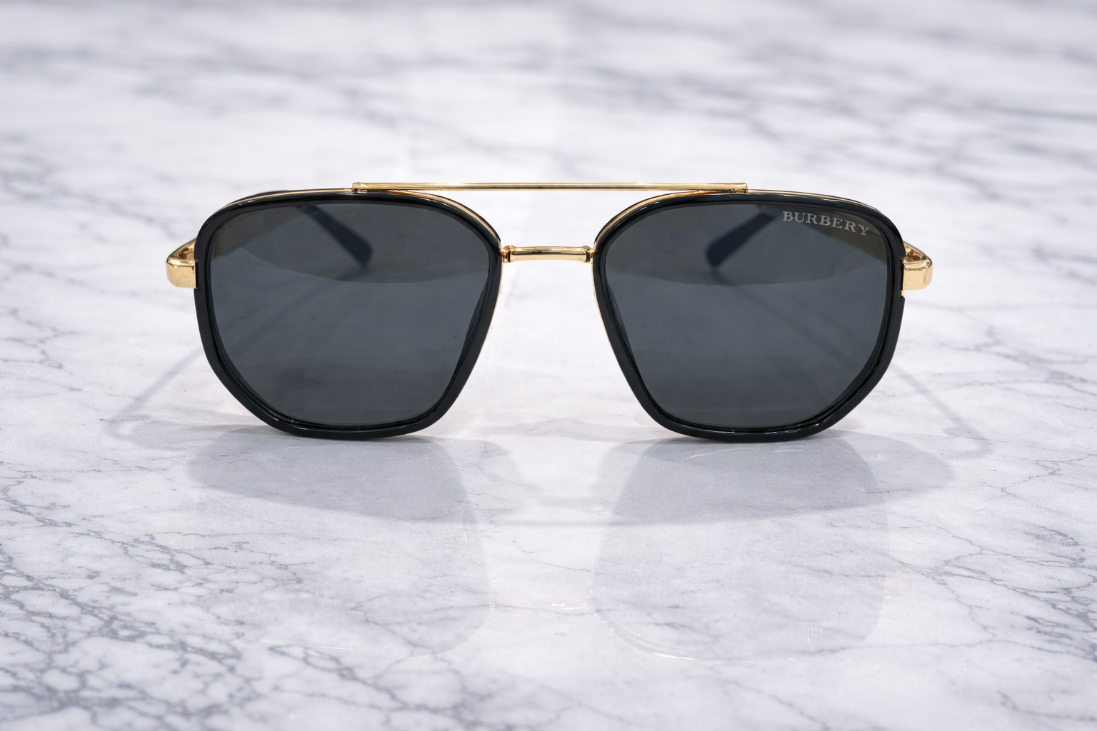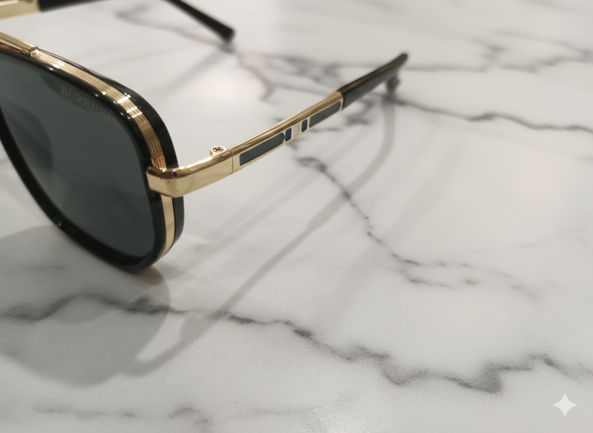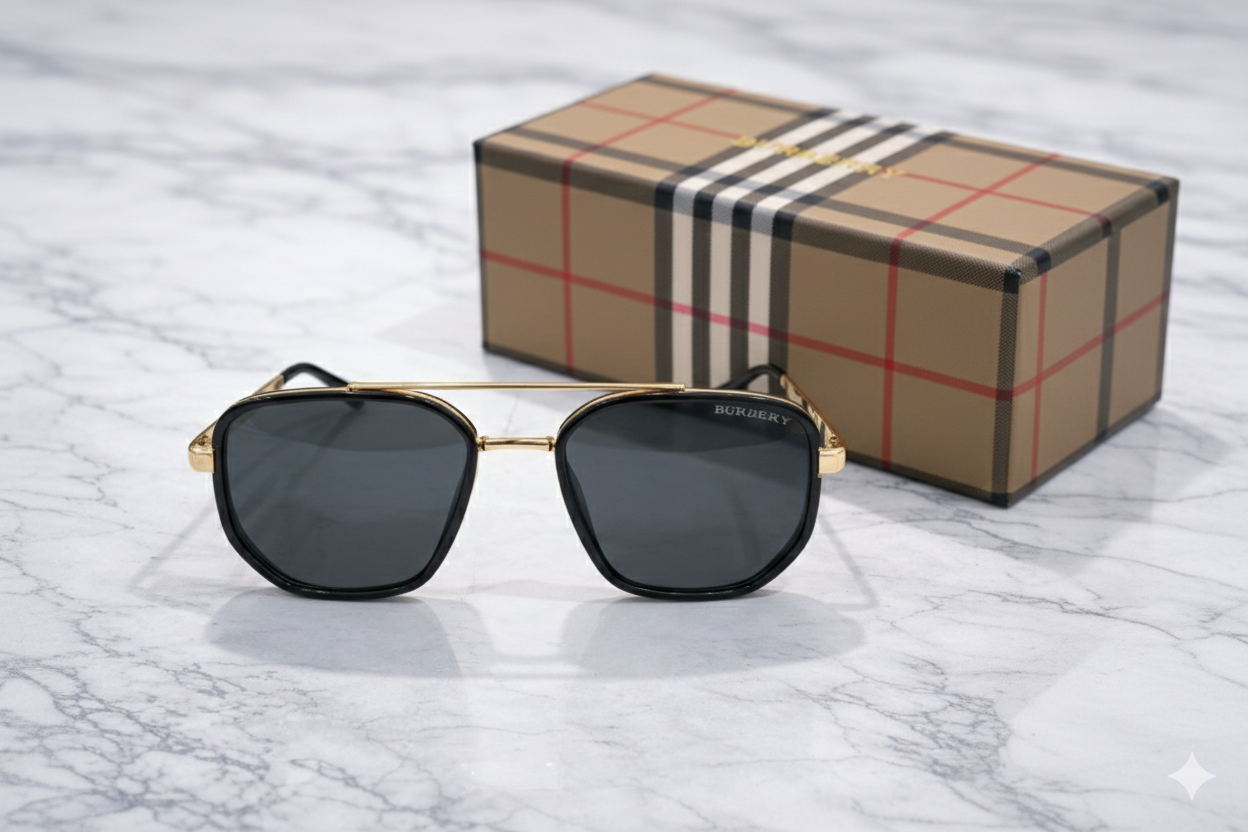 A refined expression of Burberry’s modern elegance, these rectangular sunglasses combine a sleek gold-tone metal structure with deep dark lenses. Clean lines and a minimalist silhouette make them a versatile choice for everyday wear, business styling, and polished casual looks.