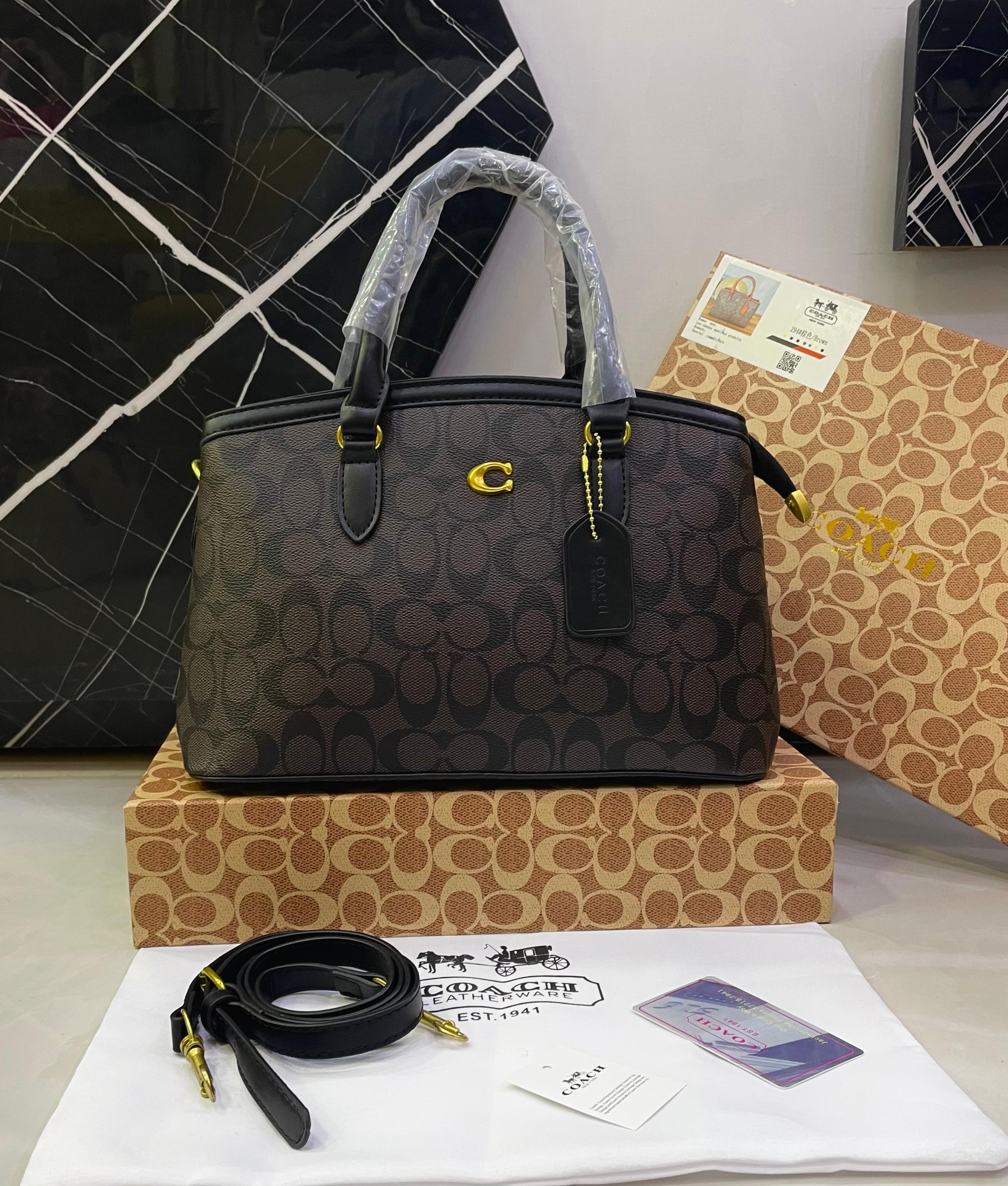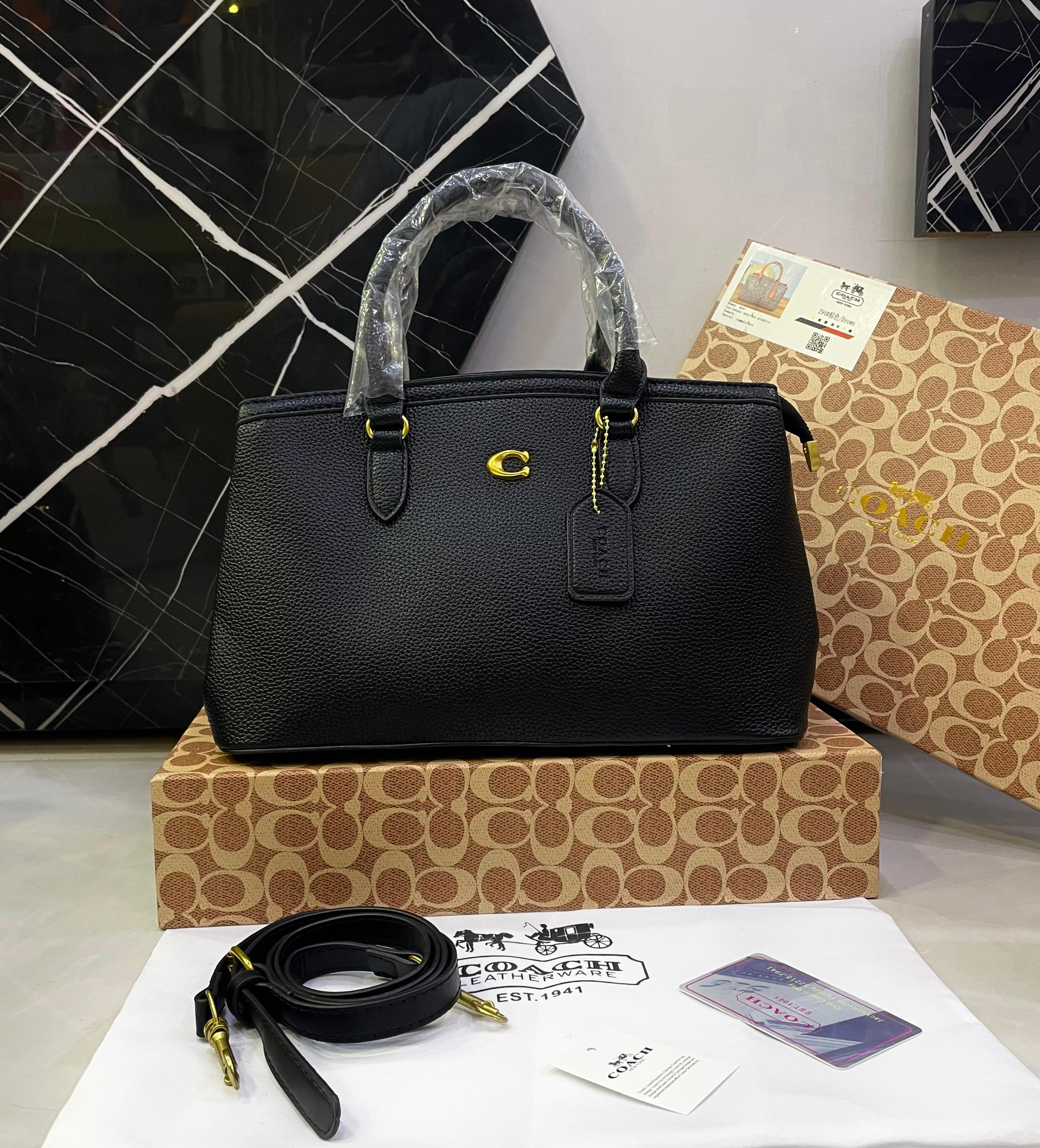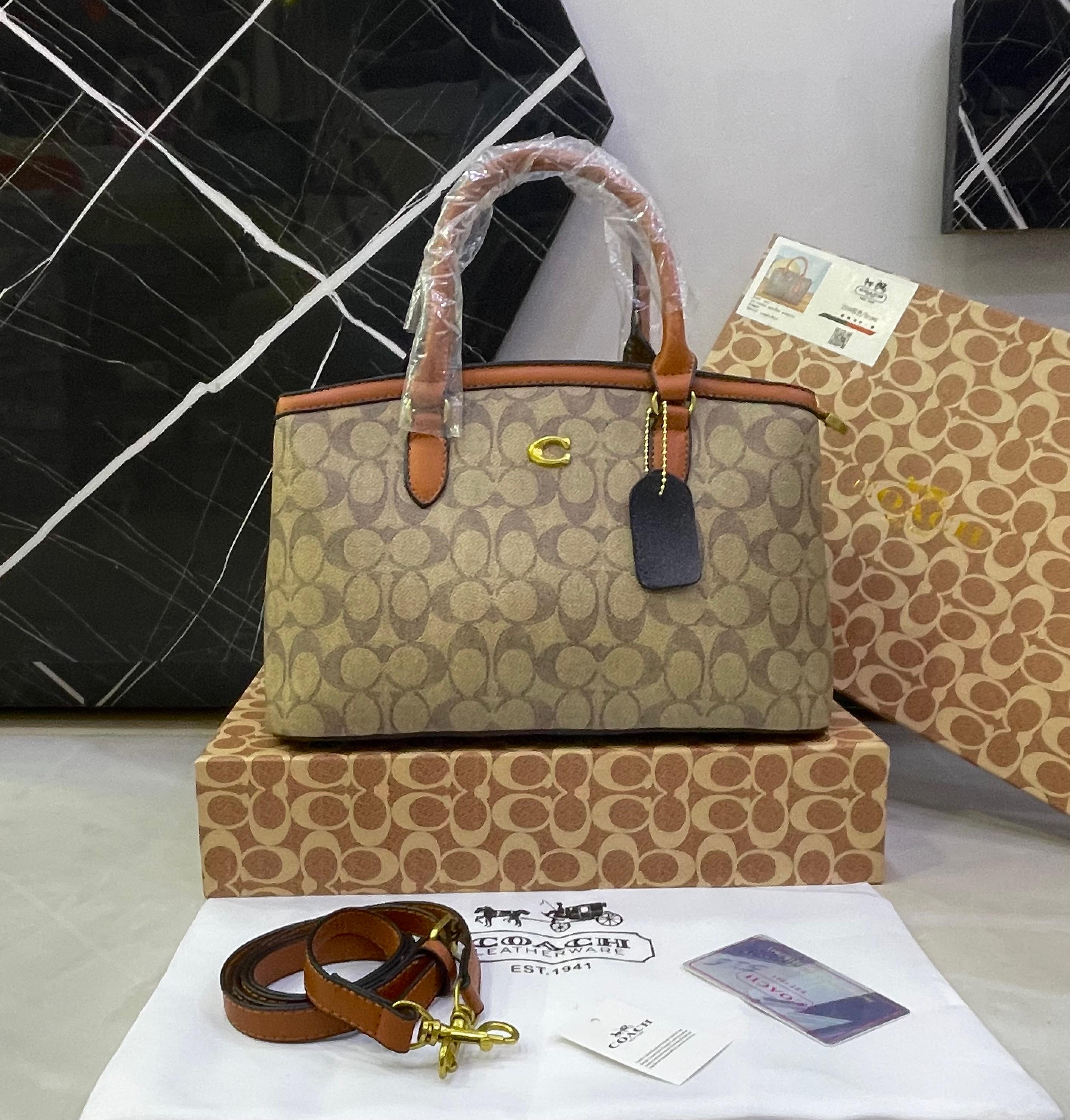 Refined, practical, and effortlessly stylish, this Coach structured tote bag is designed for everyday elegance. Featuring the iconic Coach “C” logo and available in both signature canvas and pebbled leather finishes, this tote offers generous space with a polished silhouette—perfect for work, shopping, or daily use.