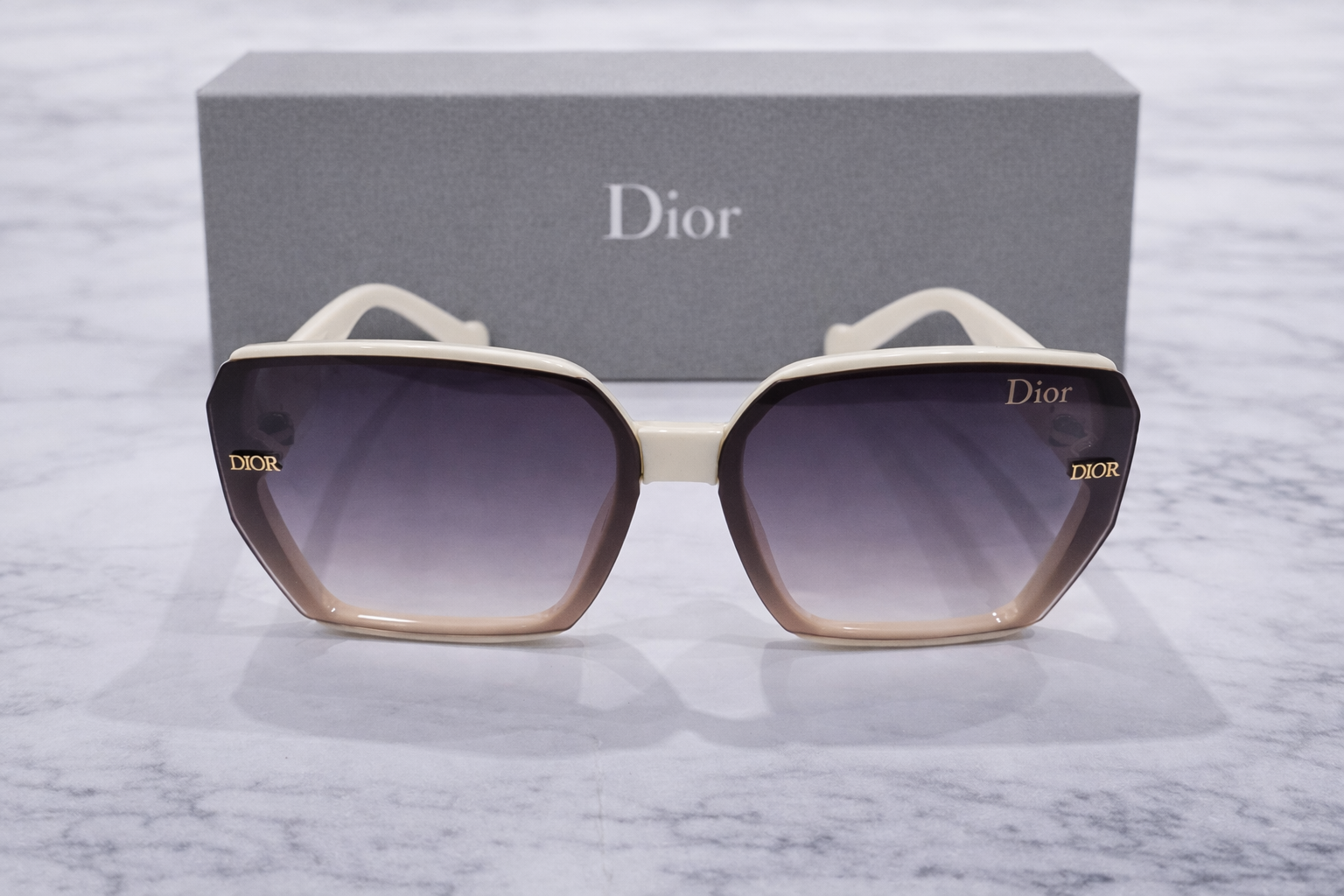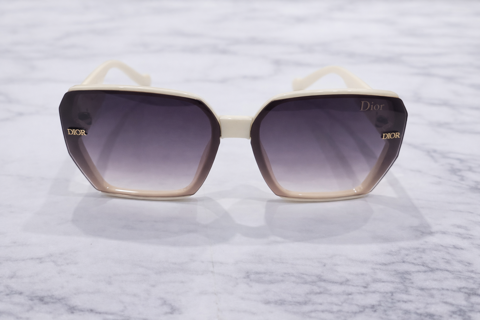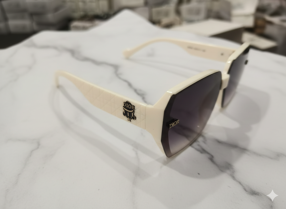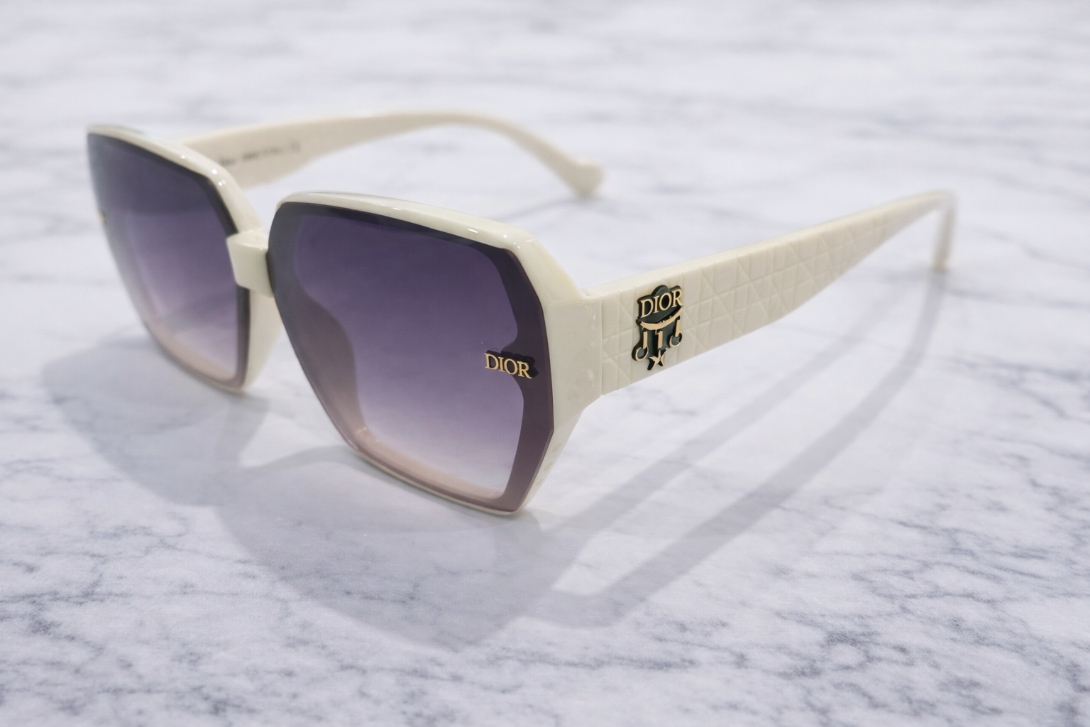 These Dior-inspired oversized square sunglasses feature an elegant ivory-toned frame paired with soft gradient lenses. Subtle gold “Dior” branding on the lenses adds a refined luxury touch, making them ideal for sophisticated everyday wear and statement styling.
