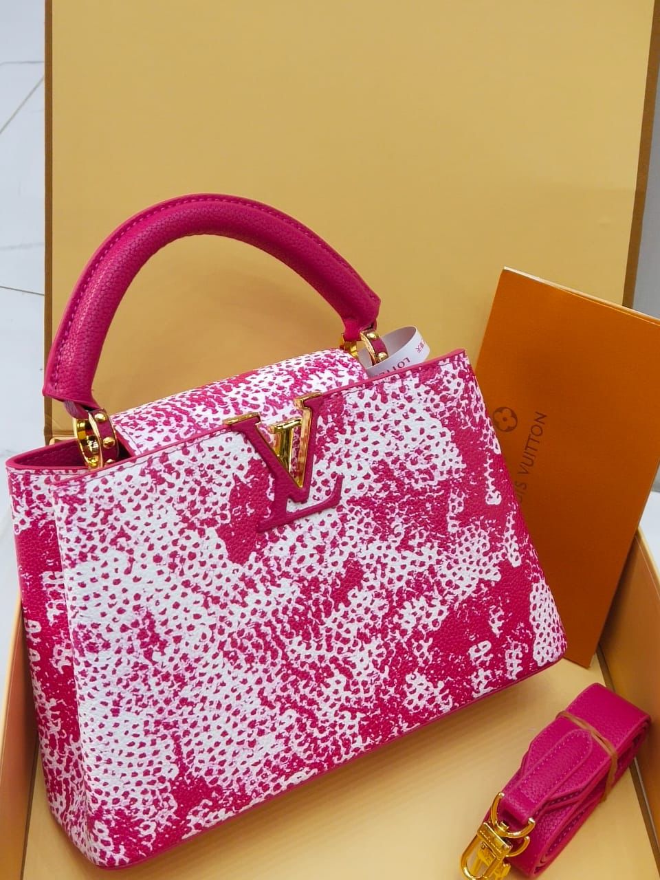 Iconic Capucines flap (wear in for subtle LV or out to show the LV signature)