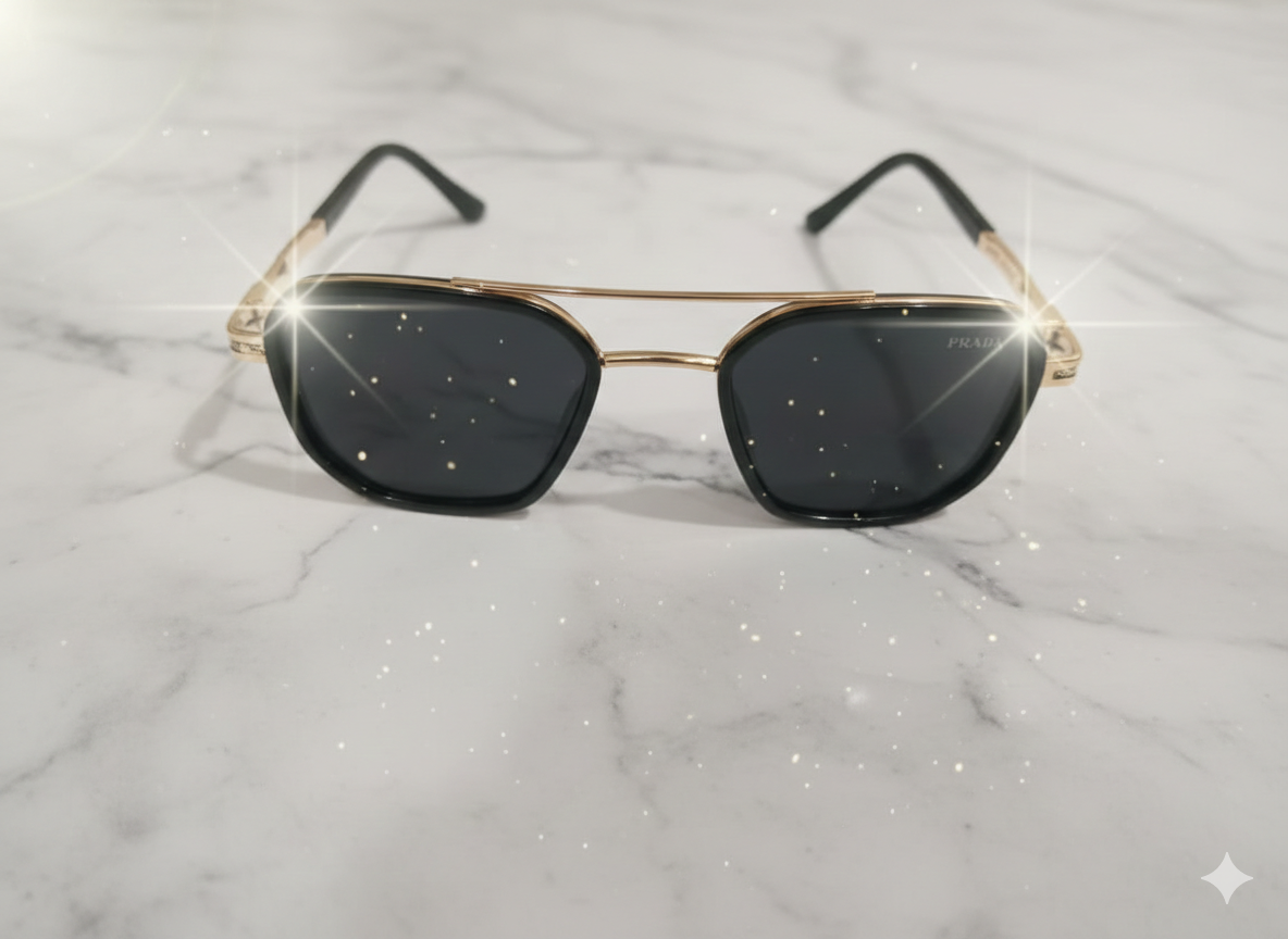 Prada Geometric Metal Sunglasses – Black Lens Edition
