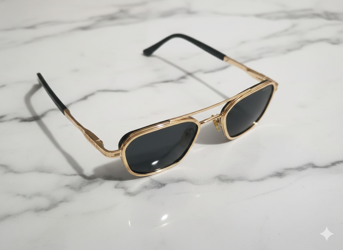 Sophisticated and contemporary, these Prada geometric sunglasses feature a sleek metal frame paired with deep black lenses. The sharp yet elegant silhouette reflects Prada’s modern luxury identity—crafted for those who prefer understated elegance with a bold designer presence.