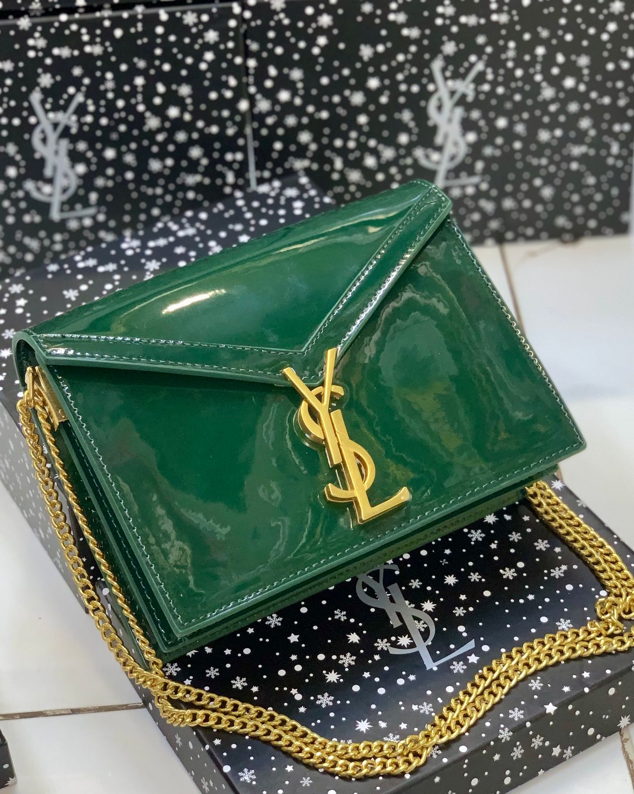 👜 Saint Laurent Style Monogram Chain Shoulder Bag