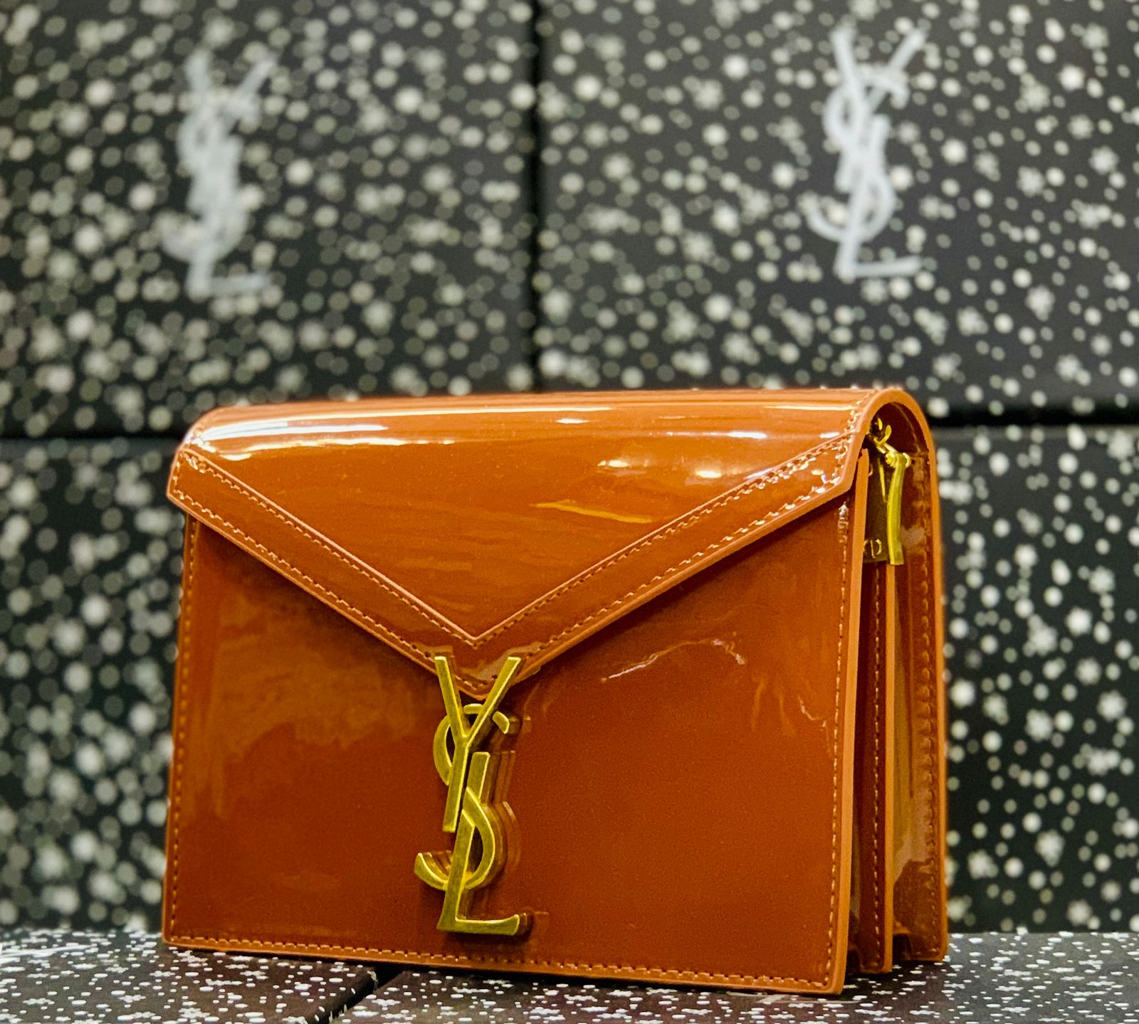 Glossy patent leather-look finish (luxury-inspired)